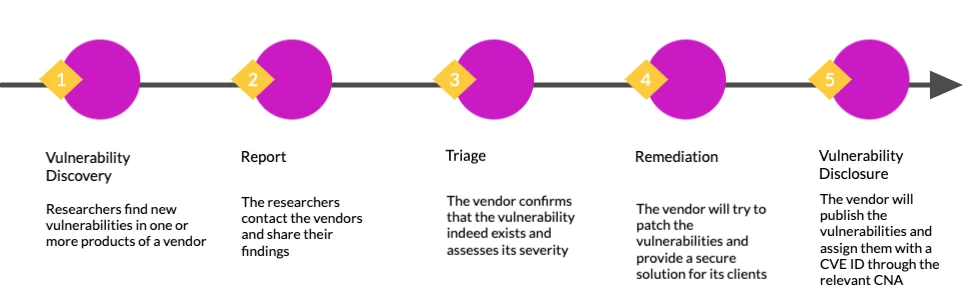 Once a vulnerability has been confirmed, the researcher reaches out to the affected vendor and shares their findings. Here are three steps in this part of the process: