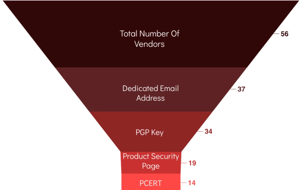 Moreover, we're pleased to report that 11 vendors we disclosed to published a product security webpage, dedicated security email address, and PGP key after our disclosure process was initiated with our guidance.