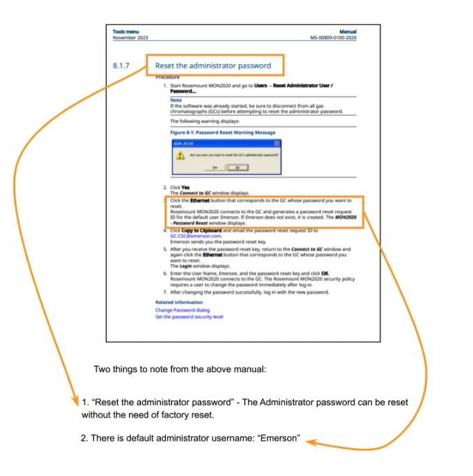 In Emerson Rosemount GC370XA, GC700XA, and GC1500XA products, an unauthenticated user with network access could bypass authentication and acquire admin capabilities.